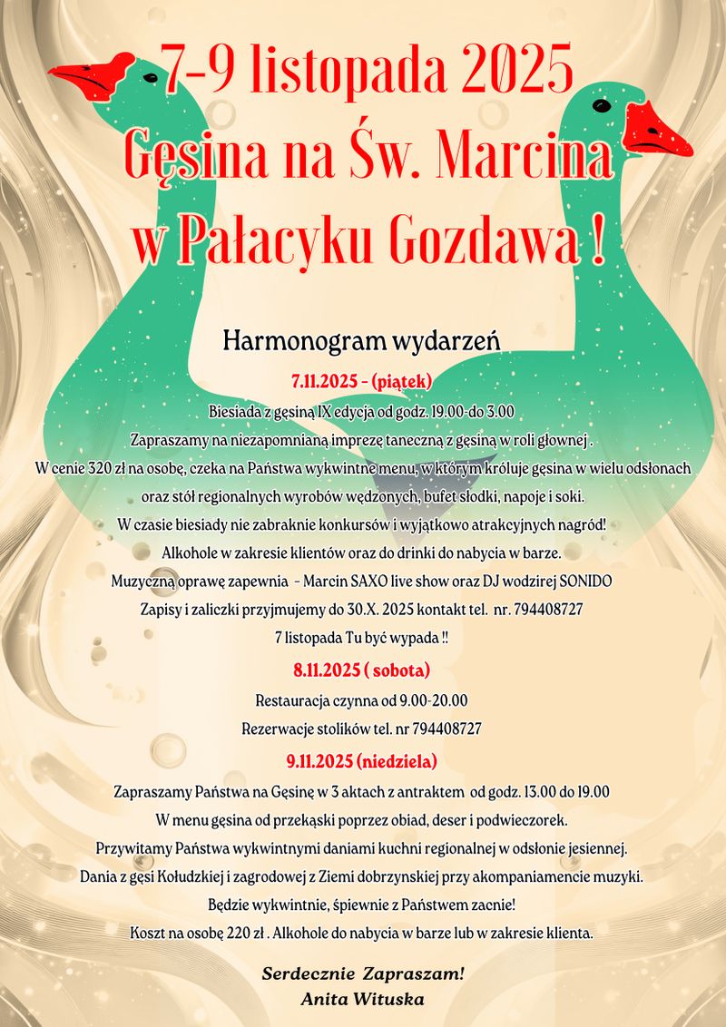 Imprezy okolicznościowe sobota, niedziela